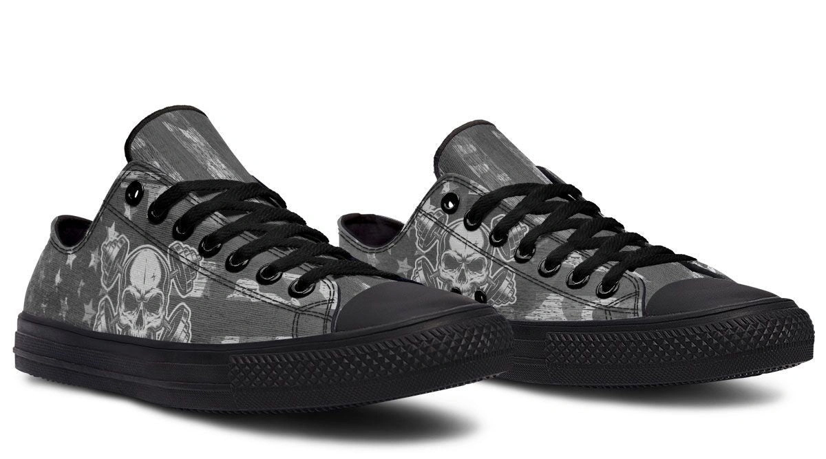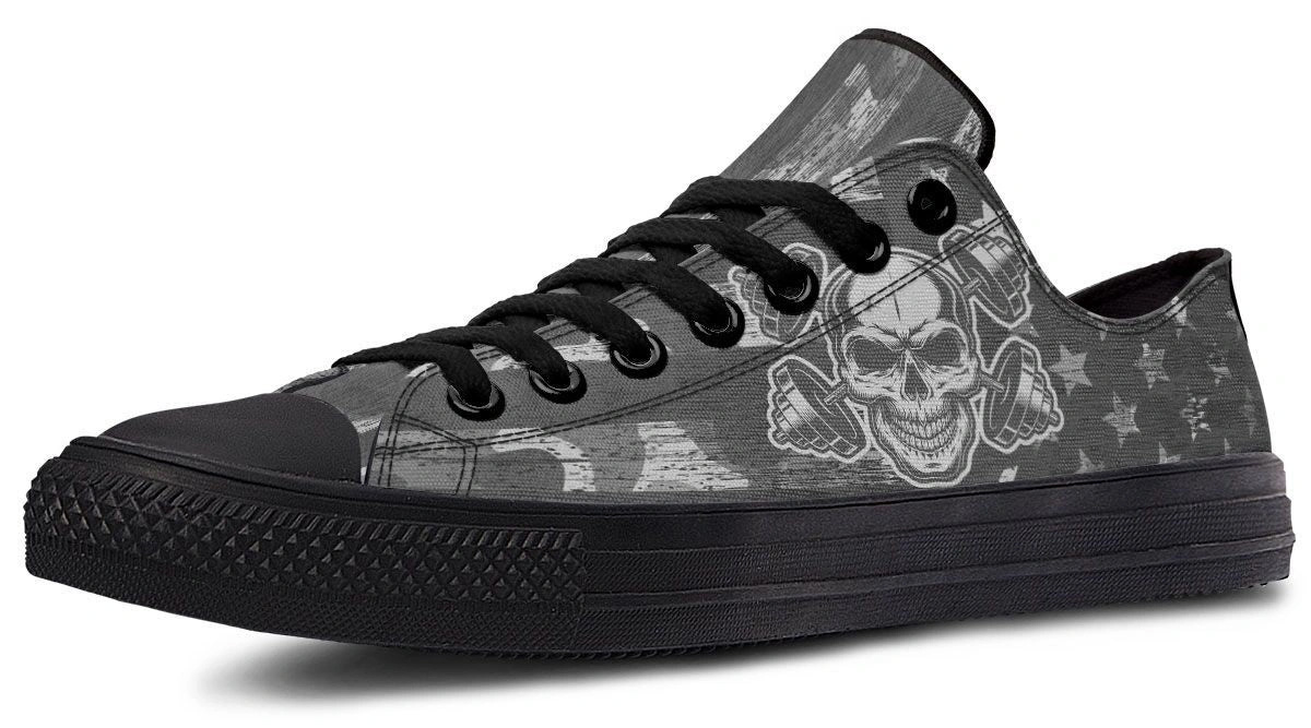 Cross Dumbbell Skull Low-Top Sneakers – Edgy Streetwear