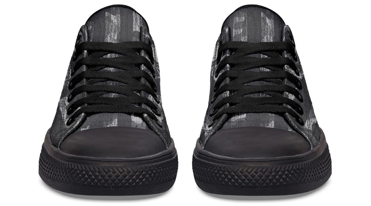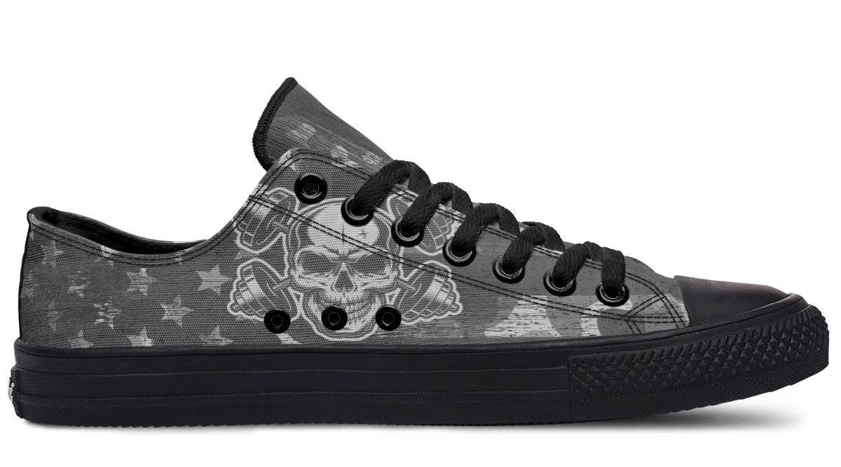 Elevate your urban wardrobe with the Cross Dumbbell Skull Low-Top Sneaker. Featuring a striking gothic-inspired skull and dumbbell graphic, these edgy sneakers blend hardcore aesthetics with everyday comfort. Built with a supportive low-top silhouette and a slip-resistant sole, they offer all-day durability for trendsetters and fitness fans alike. Whether hitting the pavement or the gym, these graphic sneakers make a powerful statement with every stride.