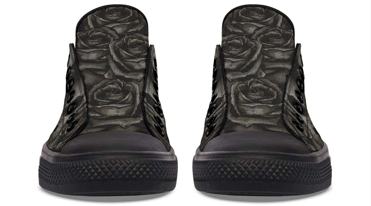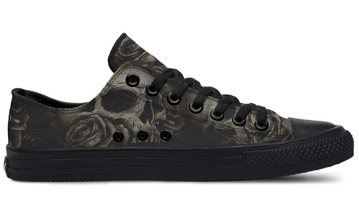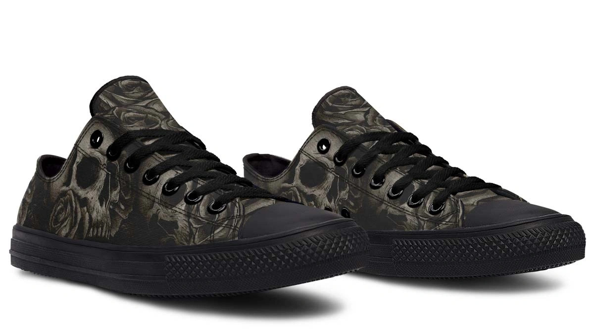 Dead Rose Pattern Low-Top Sneakers – Black Gothic Streetwear