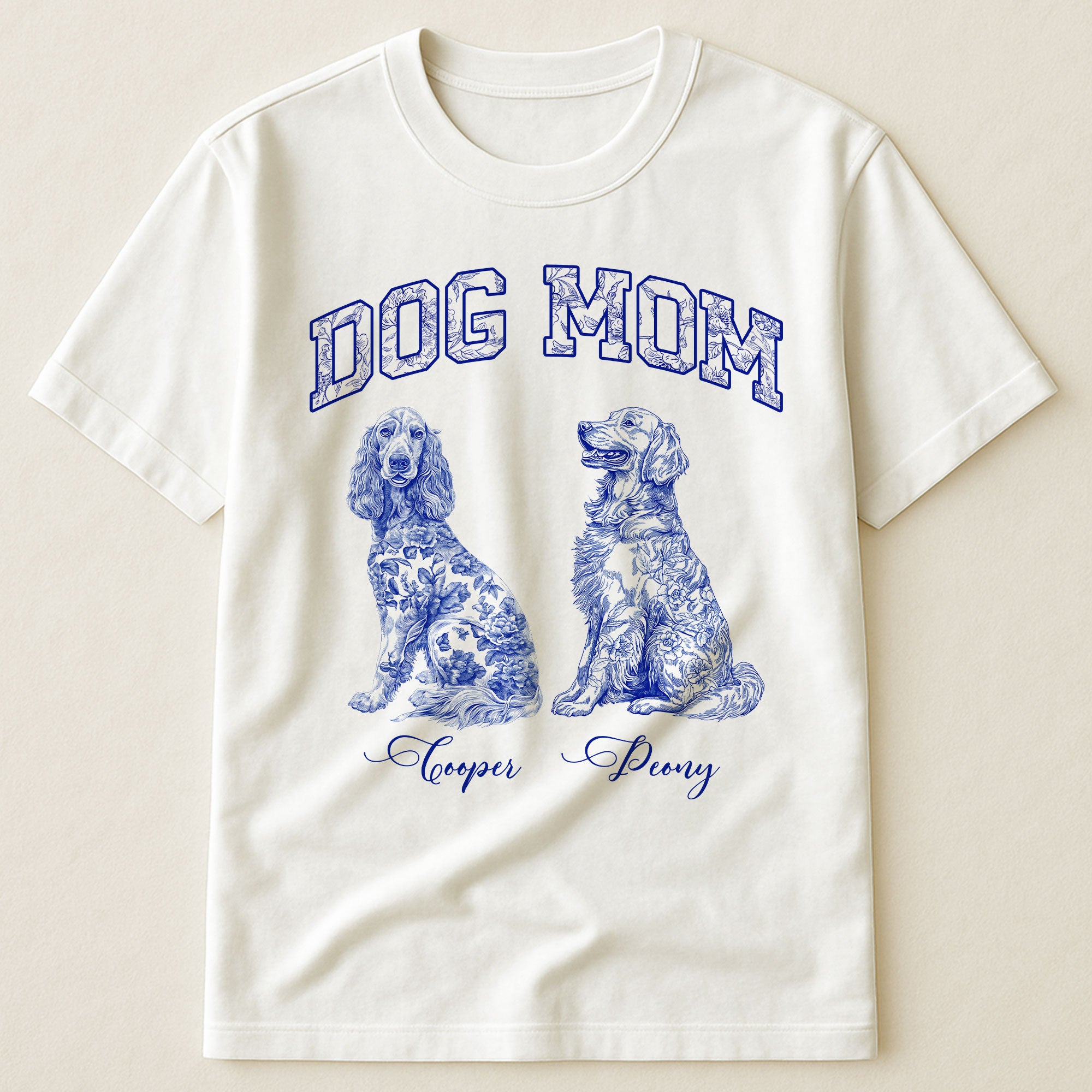 Celebrate your bond with your furry friend in style with our Dog Mom Toile De Jouy Chinoiserie Custom Dog Breeds – Personalized Shirt. This shirt is much more than just a product; it is a warm testament to the heartwarming relationship you share with your favourite pet. Boasting a chic Chinoiserie design, this decorated shirt beautifully captures the essence of being a proud dog mom. This unique garment is also customizable to feature specific dog breeds, allowing you to truly cherish your special connection with your beloved pet.